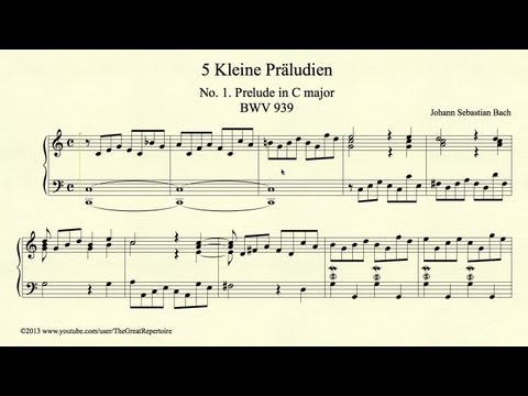 Bach Bwv 939 }}- Johann Sebastian Bach, 5 Kleine Präludien, No 1 Prelude in C major, BWV 939, Piano Sheet music (affiliate link): http://amzn.to/2BuWAwQ 5 Little Preludes ...
